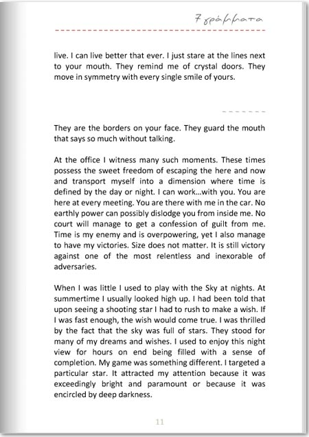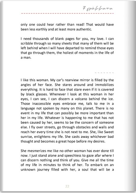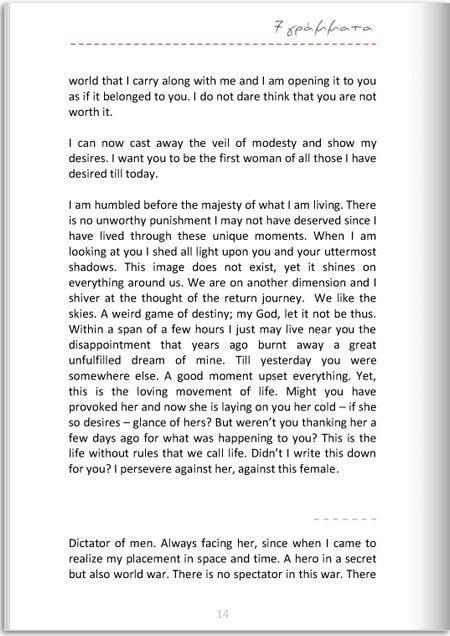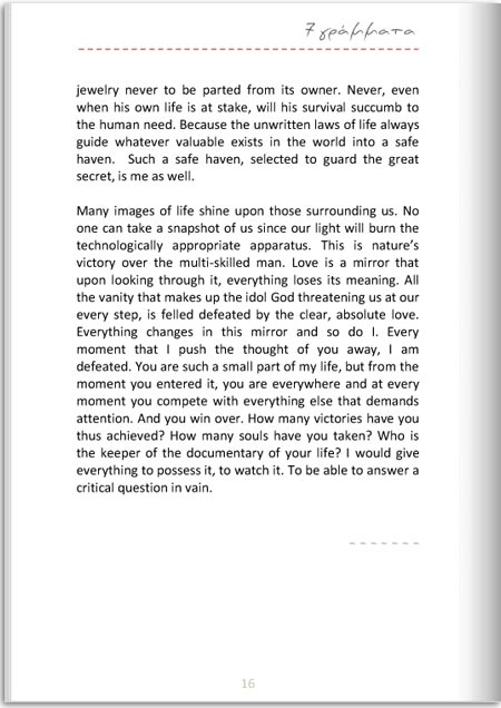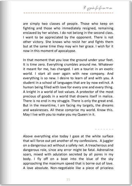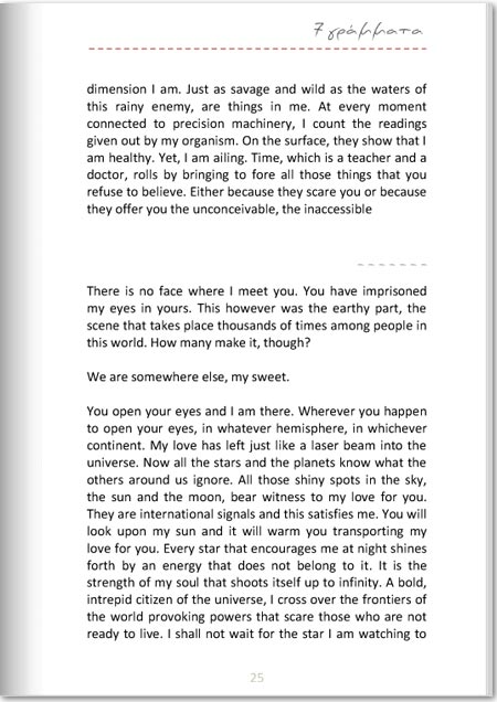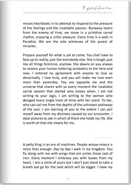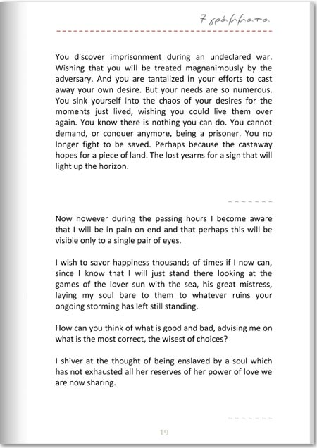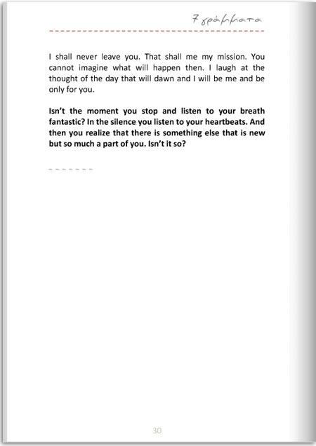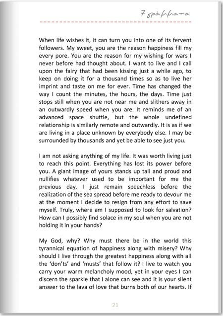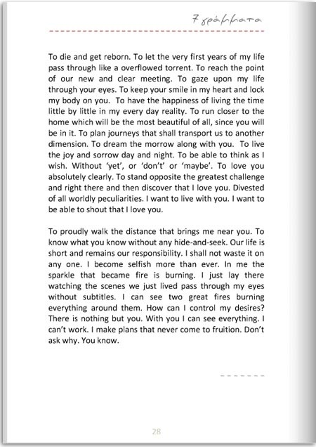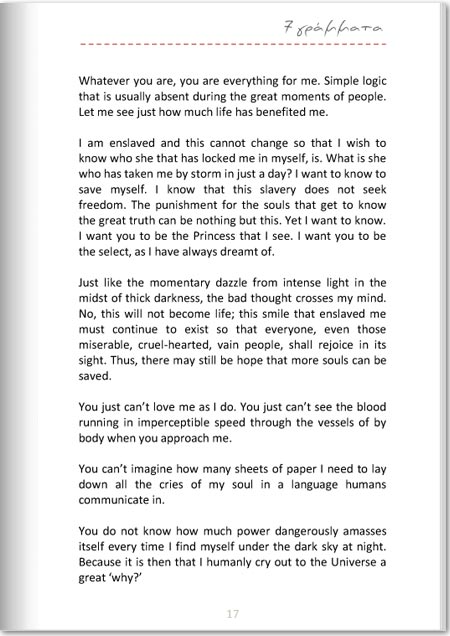 Living the passion that I had never experienced before, I carry your thought at every single one of my moments. Together everywhere, your are the time on which every one of my days unfolds. At a time that hope fades and joy is more precious than gold itself, I, a runaway convict, with my soul revived by my ardour to exist with you, I live my holy moment, bound to scribbling a story that is threatened by human censorship.